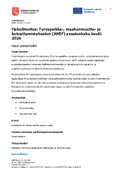 Turvapaikka-, maahanmuutto- ja kotouttamisrahaston (AMIF) avustushaku kevät 2026.