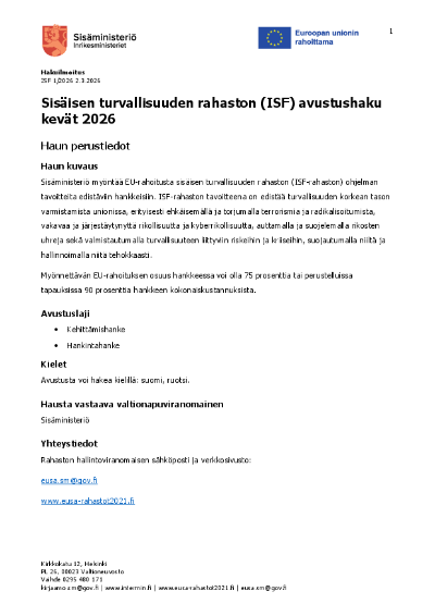 Sisäisen turvallisuuden rahaston (ISF) avustushaku kevät 2026.