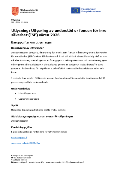 Utlysning av understöd ur fonden för inre säkerhet (ISF) våren 2026.
